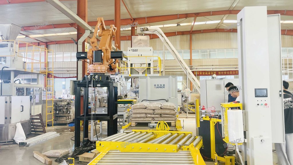 ເຈົ້າ​ຢູ່​ທີ່​ນີ້: ຫນ້າທໍາອິດ 1 ຂ່າວ 1 15KG ເມັດໄມ້ຊັ່ງນໍ້າຫນັກໃສ່ຖົງ Palletizing ແມ່ນກຽມພ້ອມສໍາລັບການຈັດສົ່ງ