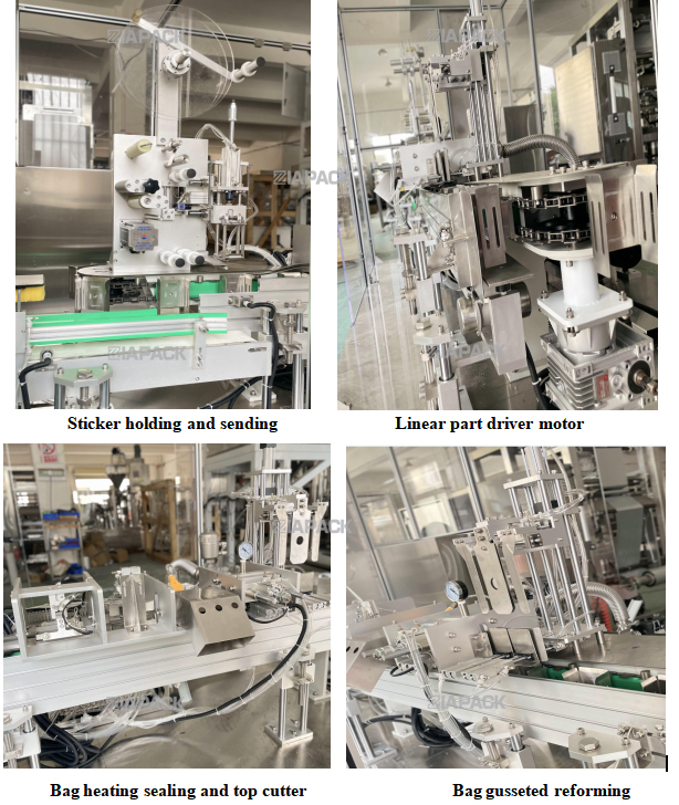 ເຄື່ອງນີ້ແມ່ນການອອກແບບພິເສດສໍາລັບການເຮັດຖົງ gusset ທີ່ມີປ້າຍເທິງ .ຫຼັງຈາກຖົງເຕັມທີ່ມີຜະລິດຕະພັນຫຼຸດລົງໃນເຄື່ອງນີ້ .ເຄື່ອງນີ້ຈະປະຕິບັດຖົງ, ຜ່ານຖົງຫນຶ່ງຄັ້ງທີ່ພັບປາກແລະຫຼັງຈາກນັ້ນຕິດປ້າຍ. SUS304 .PLC ແລະຫນ້າຈໍສໍາພັດຮັບຮອງເອົາໂດຍຍີ່ຫໍ້ Siemens .ແລະພາກສ່ວນ Pneumatic ຮັບຮອງເອົາຍີ່ຫໍ້ SMC .ອົງປະກອບໄຟຟ້າຕົ້ນຕໍຮັບຮອງເອົາຍີ່ຫໍ້ Omron ແລະ Schneider. ເຄື່ອງນີ້ແມ່ນເຮັດວຽກຮ່ວມກັບເຄື່ອງຫຸ້ມຫໍ່ອັດຕະໂນມັດເພື່ອບັນລຸການຕິດສະຫຼາກເທິງຖົງສໍາເລັດຮູບ .ເຄື່ອງນີ້ສາມາດອັດຕະໂນມັດເຖິງຫນ້າທີ່. ຂອງປ້າຍທີ່ແຍກອອກ, ການສົ່ງປ້າຍຊື່ .ເຄື່ອງກວດສອບປ້າຍແລະການກົດປ້າຍ.