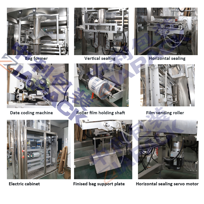 * ການປ້ອງກັນຄວາມປອດໄພປຸກອັດຕະໂນມັດທີ່ດີເລີດ, ສິ່ງເສດເຫຼືອຫນ້ອຍ, ເຄື່ອງຈະອັດຕະໂນມັດສໍາເລັດທັງຫມົດຂະບວນການບັນຈຸຈາກການໃຫ້ອາຫານ, ການວັດ, ການຕື່ມ, ການພິມ, ຖົງສໍາເລັດ.