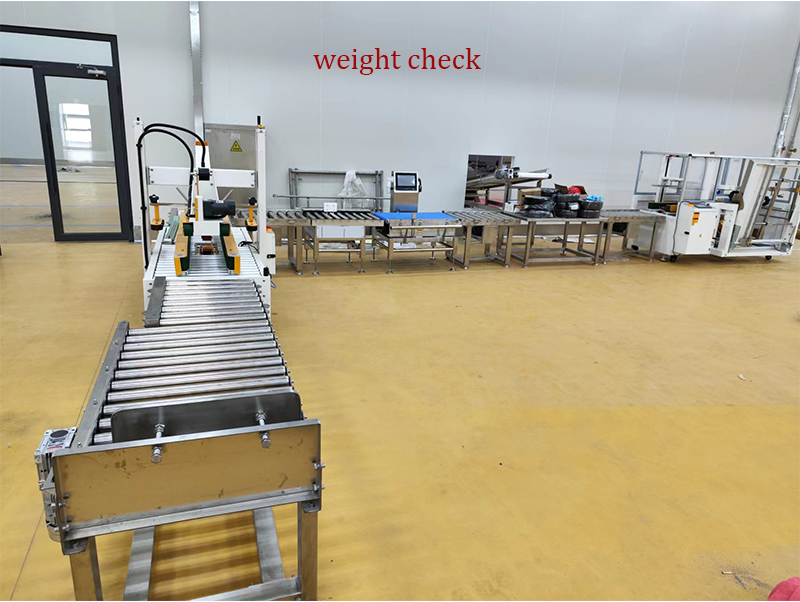 ຫຼັງຈາກຕື່ມໃສ່ຖົງດ້ວຍອາຫານແຊ່ແຂງແລ້ວ, ແຕ່ລະຖົງຈະຖືກກວດຄືນໂດຍເຄື່ອງກວດຈັບນ້ຳໜັກເພື່ອຮັບປະກັນວ່ານ້ຳໜັກກົງກັບນ້ຳໜັກເປົ້າໝາຍ, ຈາກນັ້ນຈຶ່ງຜ່ານເຄື່ອງກວດຈັບໂລຫະເພື່ອໃຫ້ແນ່ໃຈວ່າບໍ່ມີໂລຫະປະສົມເຂົ້າໃສ່ແຕ່ລະຖົງ. ຫຼັງຈາກນັ້ນ, ຖົງໄດ້ຖືກຂົນສົ່ງໄປຫາສາຍບັນຈຸກ່ອງ.