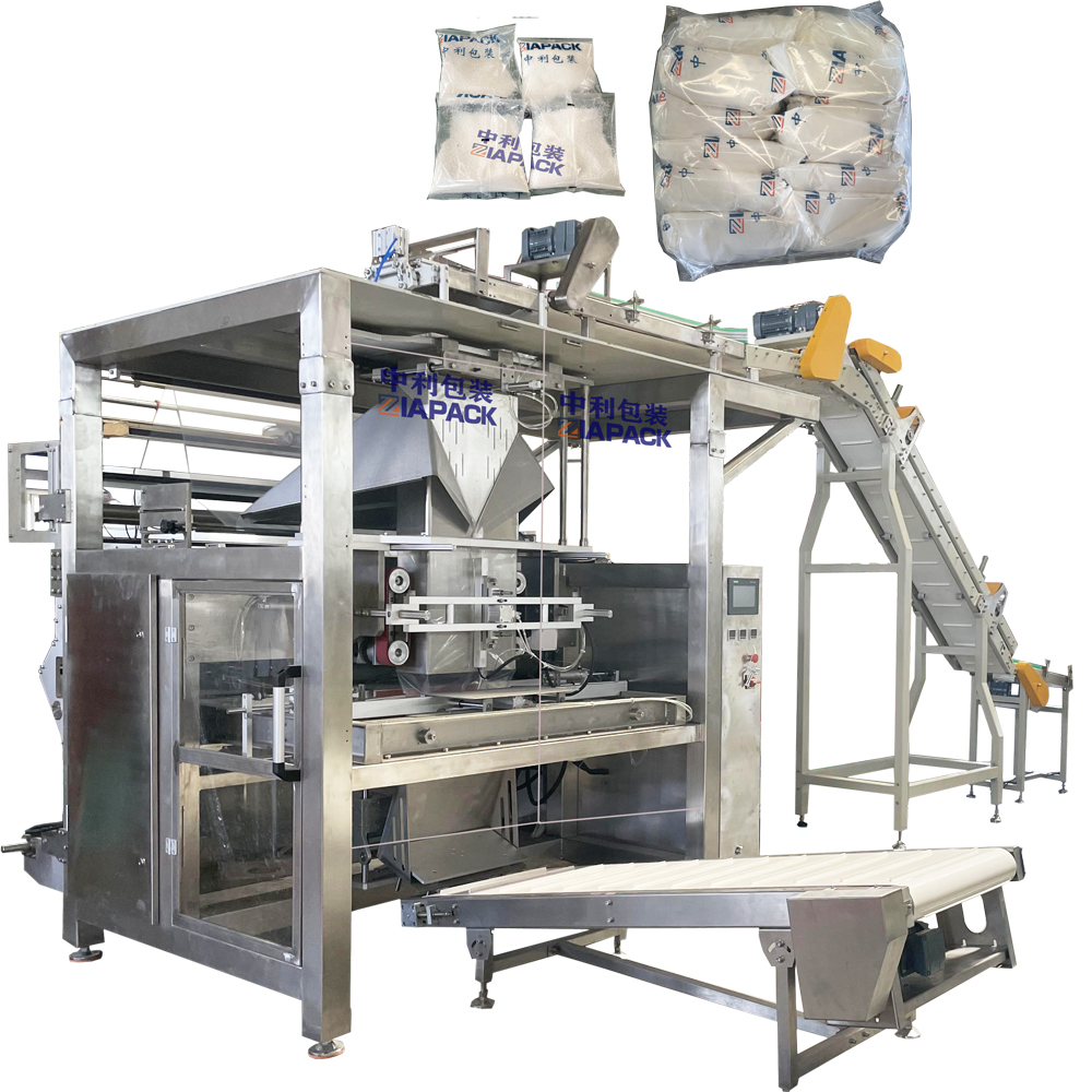 ເຄື່ອງນີ້ແມ່ນເຫມາະສົມທີ່ຈະບັນຈຸຖົງຂະຫນາດນ້ອຍເຂົ້າໄປໃນຖົງໃຫຍ່ .ເຄື່ອງສາມາດເຮັດຖົງອັດຕະໂນມັດແລະຕື່ມໃສ່ໃນຖົງຂະຫນາດນ້ອຍແລະຫຼັງຈາກນັ້ນປະທັບຕາຖົງໃຫຍ່. ເຄື່ອງນີ້ລວມທັງຫົວຫນ່ວຍດັ່ງຕໍ່ໄປນີ້: